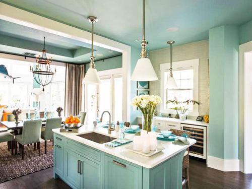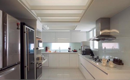 一般而言,厨房应以白色等中性色为主,然后局部搭配其他颜色。乳白色的厨房看上去清洁典雅,但不要选择带有绿色元素的黄色,既不方便打理,视觉效果也欠佳。