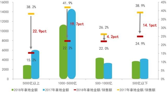 图:2017、2018年不同规模房企拿地情况