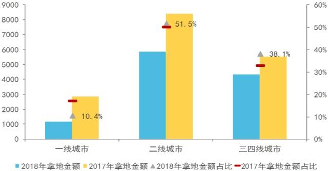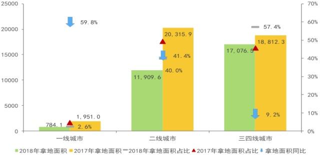拿地面积:一二线降温明显,三四线受关注
