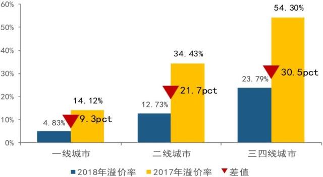 溢价率持续走低,三四线下降最为明显