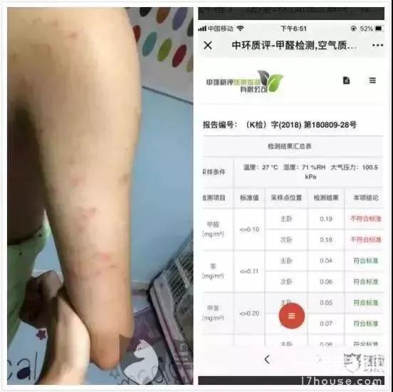 祸不单行,一个礼拜后,阮先生突然感到身体不适,发现全身长满了红包,他认为可能和甲醛有关,于是便找了权威机构来检测,结果和他料想的一样:房间甲醛严重超标。
